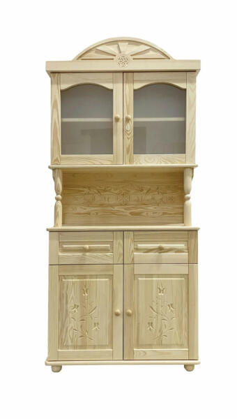 Tömör fenyőből készült termék. Lapra szerelten érkezik, otthon kell összeállítani! Anyagvastagsága: 2 cm Lábmagasság: 5 cm A tömör fából készült tálalólószekrényünk faragott növényi motívumokkal díszített, amelyek egyedi és stílusos megjelenést kölcsönöznek neki. Az üveg ajtók fokozzák a szekrény esztétikai vonzerejét és természetes szépségét. Emellet