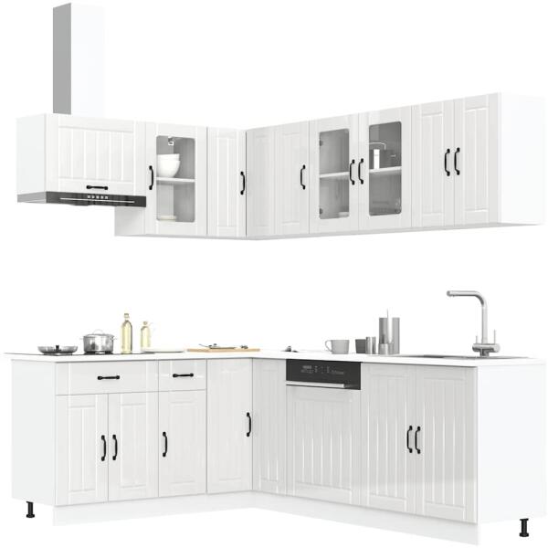 Ez az elegáns kialakítású, tizenegy részes konyhai szekrénygarnitúra optimalizálja konyhája terét, és bőséges tárolóhelyet biztosít személyes tárgyainak! Stabil és tartós anyag: A szerelt fa tartós és stabil anyag sima felülettel, amely ellenáll a nedvességnek, a vetemedésnek és a hasadásnak, így megbízható választás különféle célokhoz. Bőséges tárolóhely: