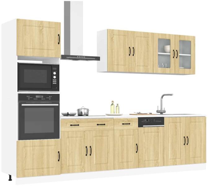 Ez az elegáns kialakítású, hétrészes konyhai szekrénygarnitúra optimalizálja konyhája terét, és bőséges tárolóhelyet biztosít személyes tárgyainak! Stabil és tartós anyag: A szerelt fa tartós és stabil anyag sima felülettel, amely ellenáll a nedvességnek, a vetemedésnek és a hasadásnak, így megbízható választás különféle célokhoz. Bőséges tárolóhely: A kon