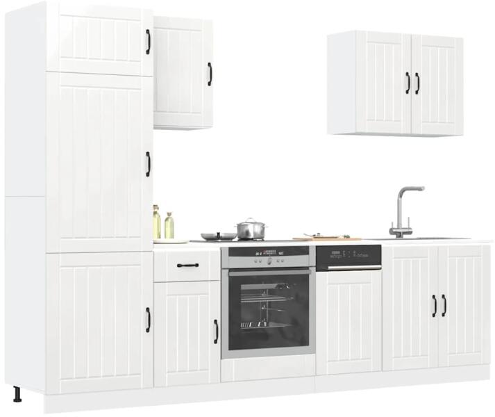 Ez az elegáns kialakítású, hétrészes konyhai szekrénygarnitúra optimalizálja konyhája terét, és bőséges tárolóhelyet biztosít személyes tárgyainak! Stabil és tartós anyag: A szerelt fa tartós és stabil anyag sima felülettel, amely ellenáll a nedvességnek, a vetemedésnek és a hasadásnak, így megbízható választás különféle célokhoz. Bőséges tárolóhely: A kon