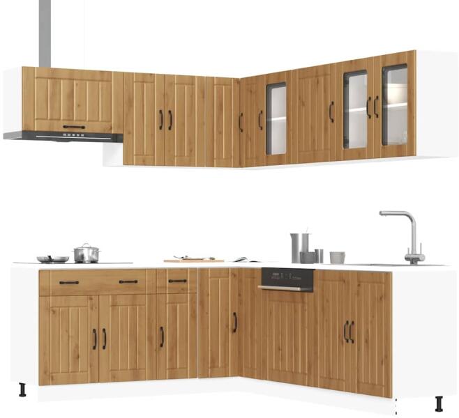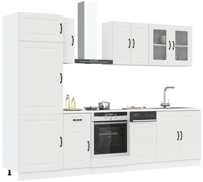 Ez az elegáns kialakítású, tizenegy részes konyhai szekrénygarnitúra optimalizálja konyhája terét, és bőséges tárolóhelyet biztosít személyes tárgyainak! Stabil és tartós anyag: A szerelt fa tartós és stabil anyag sima felülettel, amely ellenáll a nedvességnek, a vetemedésnek és a hasadásnak, így megbízható választás különféle célokhoz. Bőséges tárolóhely: