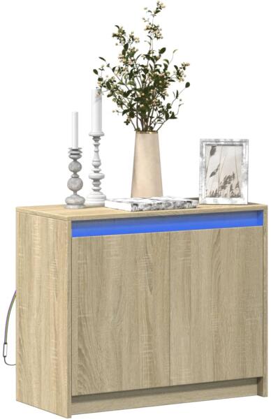 Díszítse fel szobáját ezzel a modern, LED-es lámpákkal felszerelt tálalószekrénnyel, mely könnyedén beleolvad otthona bármely stílusához. Tartós anyag: A szerelt fa kivételes minőségű, sima felületű, szilárd, stabil, és ellenáll a nedvességnek. RGB LED-világítás: A tálalószekrény élénk RGB LED-világítással lett felszerelve. A sokféle testre szabható menü seg