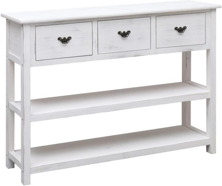 Ez a fából készült tálalószekrény időtlen stílusával pompás darabja lesz otthonának. A tálalószekrény prémium minőségű nyárfából és császárfából készült, és rendkívül stabil és tartós. Masszív teteje ideális dísztárgyak, például vázák vagy cserepes növények elhelyezésére. A 3 fiók és 2 polc bőséges tárolóhelyet biztosít a különféle tárgyak r