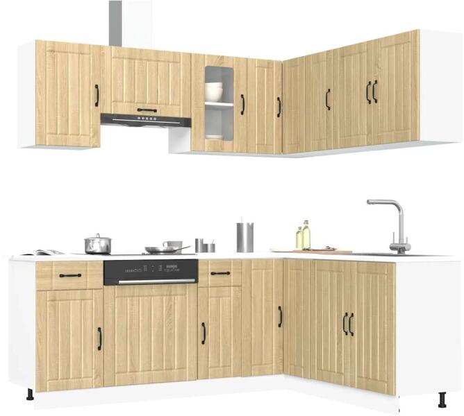 Ez az elegáns kialakítású, tizenegy részes konyhai szekrénygarnitúra optimalizálja konyhája terét, és bőséges tárolóhelyet biztosít személyes tárgyainak! Stabil és tartós anyag: A szerelt fa tartós és stabil anyag sima felülettel, amely ellenáll a nedvességnek, a vetemedésnek és a hasadásnak, így megbízható választás különféle célokhoz. Bőséges tárolóhely: