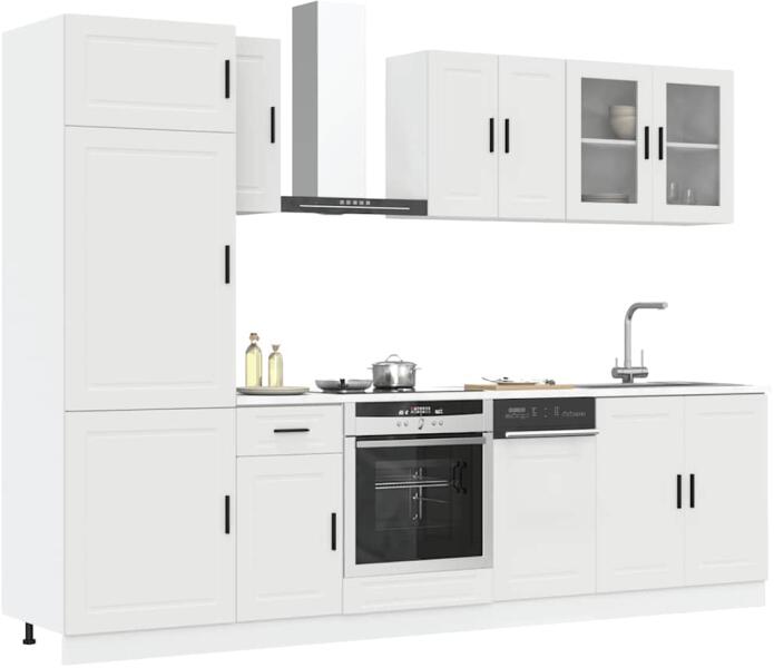 Ez az elegáns kialakítású, nyolcrészes konyhai szekrénygarnitúra optimalizálja konyhája terét, és bőséges tárolóhelyet biztosít személyes tárgyainak! Stabil és tartós anyag: A szerelt fa tartós és stabil anyag sima felülettel, amely ellenáll a nedvességnek, a vetemedésnek és a hasadásnak, így megbízható választás különféle célokhoz. Bőséges tárolóhely: A ko