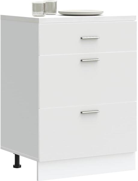 Ez a konyhai alapszekrény optimalizálja a konyhai teret, és bőséges tárolóhelyet biztosít személyes tárgyai számára! Stabil és tartós anyag: A szerelt fa tartós és stabil anyag sima felülettel, amely ellenáll a nedvességnek, a vetemedésnek és a hasadásnak, így megbízható választás különféle célokhoz. Bőséges tárolóhely: A konyhai alapszekrény elegendő helyet k