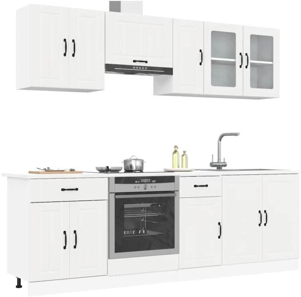 Ez az elegáns kialakítású, nyolcrészes konyhai szekrénygarnitúra optimalizálja konyhája terét, és bőséges tárolóhelyet biztosít személyes tárgyainak! Stabil és tartós anyag: A szerelt fa tartós és stabil anyag sima felülettel, amely ellenáll a nedvességnek, a vetemedésnek és a hasadásnak, így megbízható választás különféle célokhoz. Bőséges tárolóhely: A ko