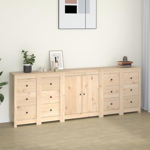 Tárolja értékes dolgait stílusosan. Ez a tálalószekrények ideális minden modern nappaliba, hálószobába vagy irodába, hogy a szükséges tárgyakat kéznél tartsa. Tömör fenyőfa: A tömör fenyőfa egy gyönyörű természetes anyag. A fenyőfa erezete egyenes, a csomók pedig jellegzetes, rusztikus megjelenést kölcsönöznek az anyagnak. Bőséges tárolóhely: A szekrény bősé