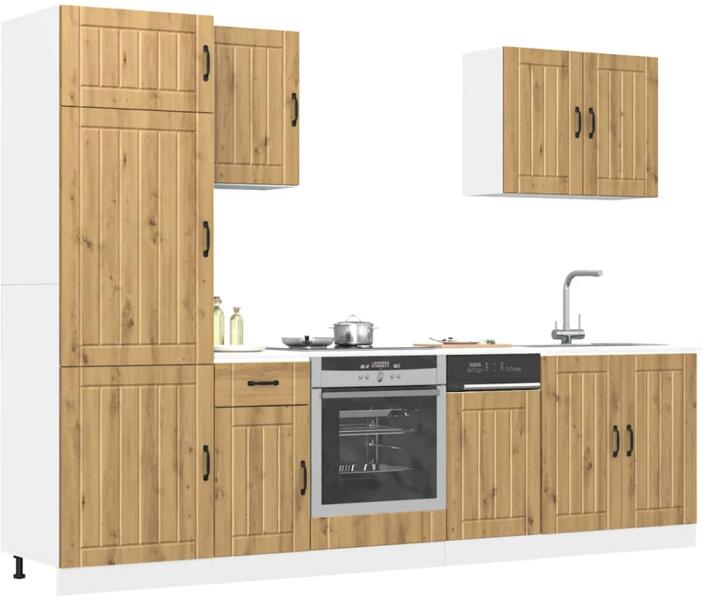 Ez az elegáns kialakítású, hétrészes konyhai szekrénygarnitúra optimalizálja konyhája terét, és bőséges tárolóhelyet biztosít személyes tárgyainak! Stabil és tartós anyag: A szerelt fa tartós és stabil anyag sima felülettel, amely ellenáll a nedvességnek, a vetemedésnek és a hasadásnak, így megbízható választás különféle célokhoz. Bőséges tárolóhely: A kon