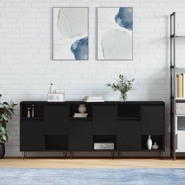Ez a modern, időtlen megjelenésű tálalószekrény otthona nagyszerű kiegészítője lesz. Tartós anyag: A szerelt fa kivételes minőségű, sima felületű, szilárd, stabil, és ellenáll a nedvességnek. Fémlábak: A fémlábak modern és visszafogott stílust kölcsönöznek otthonának, ráadásul a stabilitásról is gondoskodnak. Bőséges tárolóhely: A tálalószekrény bőséges