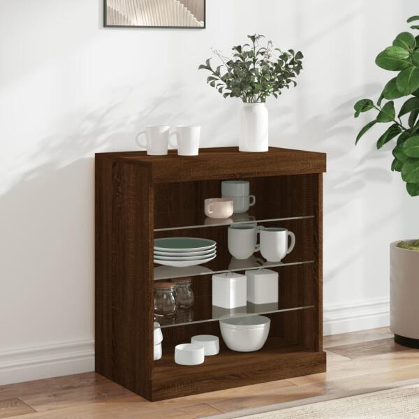 Díszítse fel szobáját ezzel a modern, LED-es lámpákkal felszerelt tálalószekrénnyel, mely könnyedén beleolvad otthona bármely stílusához. Tartós anyag: A szerelt fa kivételes minőségű, sima felületű, szilárd, stabil, és ellenáll a nedvességnek. Bőséges tárolóhely: A tálalószekrény rengeteg tárolóhelyet biztosít folyóiratai, könyvei, távirányítói és egyéb