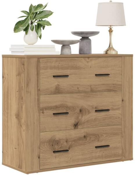 Ez a praktikus tálalószekrény számos igényét kielégíti, és a helyiség ideális kiegészítője lesz. Hosszú élettartamú anyag: A szerelt fa kivételes minőségű, sima felületű, szilárd, stabil, és ellenáll a nedvességnek. Elegendő tárhely: A 3 fiókkal felszerelt tálalószekrény bőséges tárolóhelyet kínál alapvető kellékei kézközelben történő rendezett tárol