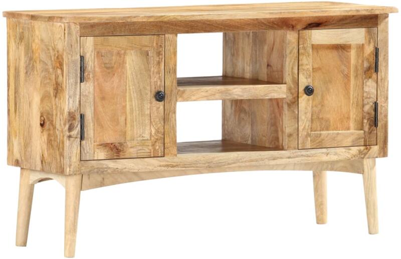 Ez a rusztikus tálalószekrény vintage bájt áraszt, és otthona nagyszerű kiegészítője lesz. A tömör mangófából készült kisszekrény le lett csiszolva és lakkozva, de megőrizte természetes színét és nyers megjelenését. A mangófa egy sűrű és robusztus keményfa, amelynek felületén gyönyörű barna vagy arany csíkok és kontúrok találhatók. A gyönyörű faerezetnek
