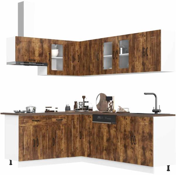 Ez az elegáns kialakítású, tizenegy részes konyhai szekrénygarnitúra optimalizálja konyhája terét, és bőséges tárolóhelyet biztosít személyes tárgyainak! Stabil és tartós anyag: A szerelt fa tartós és stabil anyag sima felülettel, amely ellenáll a nedvességnek, a vetemedésnek és a hasadásnak, így megbízható választás különféle célokhoz. Bőséges tárolóhely: