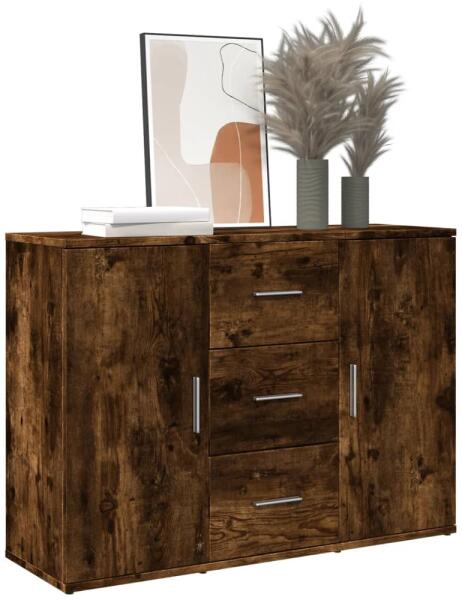 Ez a praktikus tálalószekrény számos igényét kielégíti, és a helyiség ideális kiegészítője lesz. Hosszú élettartamú anyag: A szerelt fa kivételes minőségű, sima felületű, szilárd, stabil, és ellenáll a nedvességnek. Elegendő tárhely: A 3 fiókkal felszerelt tálalószekrény bőséges tárolóhelyet kínál alapvető kellékei kézközelben történő rendezett tárol