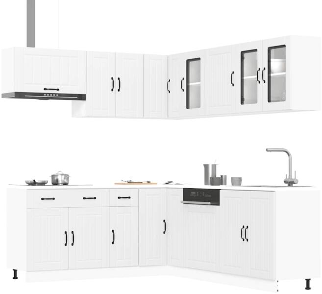 Ez az elegáns kialakítású, tizenegy részes konyhai szekrénygarnitúra optimalizálja konyhája terét, és bőséges tárolóhelyet biztosít személyes tárgyainak! Stabil és tartós anyag: A szerelt fa tartós és stabil anyag sima felülettel, amely ellenáll a nedvességnek, a vetemedésnek és a hasadásnak, így megbízható választás különféle célokhoz. Bőséges tárolóhely: