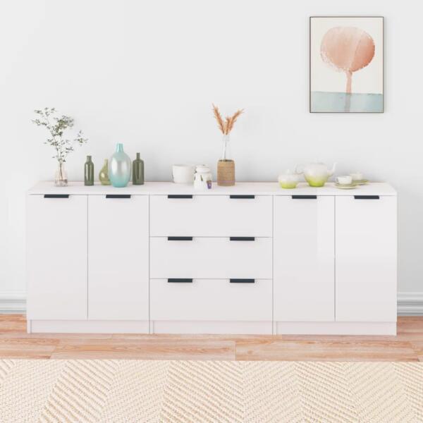 Ezek a minimalista stílusú tálalószekrények számos igényét kielégítik, és a helyiség ideális kiegészítői lesznek. Könnyen tisztítható anyag: Ez a szerelt fából készült tálalószekrény könnyen tisztítható. A szerelt fa kivételes minőségű, sima felületű, szilárd, stabil, és ellenáll a nedvességnek. Bőséges tárolóhely: A tárolóhely megkönnyíti a különf