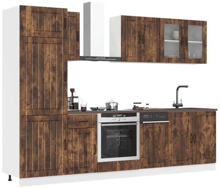 Ez az elegáns kialakítású, nyolcrészes konyhai szekrénygarnitúra optimalizálja konyhája terét, és bőséges tárolóhelyet biztosít személyes tárgyainak! Stabil és tartós anyag: A szerelt fa tartós és stabil anyag sima felülettel, amely ellenáll a nedvességnek, a vetemedésnek és a hasadásnak, így megbízható választás különféle célokhoz. Bőséges tárolóhely: A ko