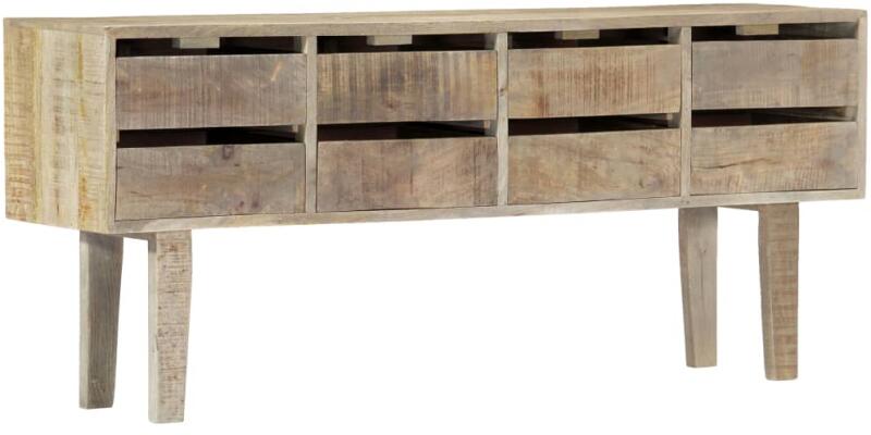 Vigyen egy kis rusztikus bájt otthonába stílusos szekrényünkkel! Ez a 8 fiókkal ellátott szekrény bőséges tárolóhelyet kínál; praktikus és egyben mutatós kiegészítője lesz otthonának. Ez a tömör mangófából készült kisszekrény kifinomult megjelenéssel bír gyönyörűen csiszolt, festett és lakkozott felületének köszönhetően. A mangófa egy sűrű és robusztus ke