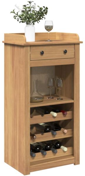 Tárolja, érlelje és mutassa be stílusosan borait ezzel a fa borszekrénnyel! Borrajongóknak tökéletes. Tömör fenyőfa: A tömör fenyőfa egy gyönyörű természetes anyag. A fenyőfa egyenes erezetű, a csomók pedig jellegzetes, rusztikus megjelenést biztosítanak az anyagnak. A tömör fenyőfából készült szekrény strapabíró és masszív. Bőséges tárolóhely: A bortartó sz