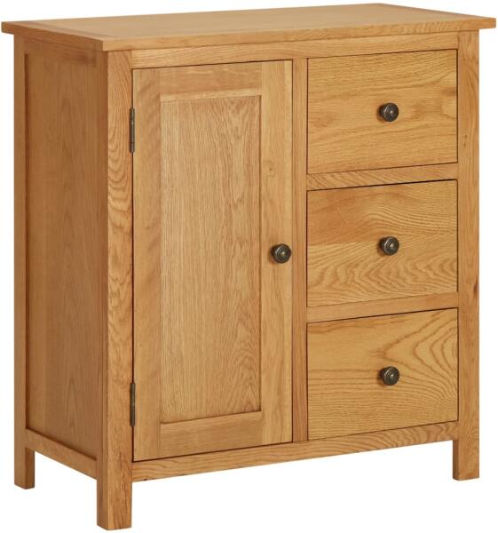 Egyszerű, rusztikus megjelenésű és hangulatú szekrényünk otthona nagyszerű kiegészítője lesz. Ez a kisszekrény tömör tölgyfából és MDF-ből készült a legmagasabb színvonalon, így tartós és praktikus. Egy ajtajával és három fiókjával a kisszekrény bőséges tárolóhelyet biztosít személyes tárgyainak, hogy a szoba rendezett maradjon. Komódként is használható.
