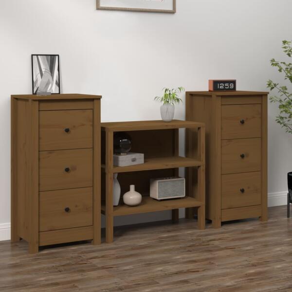 Élvezze a rendezett nappali látványát ezekkel a fa tálalószekrényekkel! Ez a praktikus tálalószekrény kielégíti különféle igényeit, és a helyiség ideális kiegészítője lesz. Tömör fenyőfa: A tömör fenyőfa egy gyönyörű természetes anyag. A fenyőfa erezete egyenes, a csomók pedig jellegzetes, rusztikus megjelenést kölcsönöznek az anyagnak. Bőséges tárolóhely: