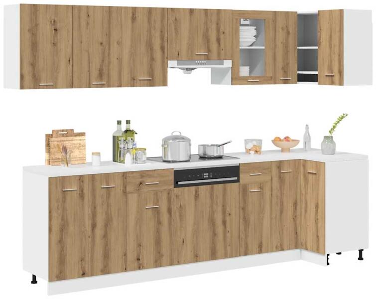 Ez az elegáns kialakítású, tizenegy részes konyhai szekrénygarnitúra optimalizálja konyhája terét, és bőséges tárolóhelyet biztosít személyes tárgyainak! Stabil és tartós anyag: A szerelt fa tartós és stabil anyag sima felülettel, amely ellenáll a nedvességnek, a vetemedésnek és a hasadásnak, így megbízható választás különféle célokhoz. Bőséges tárolóhely: