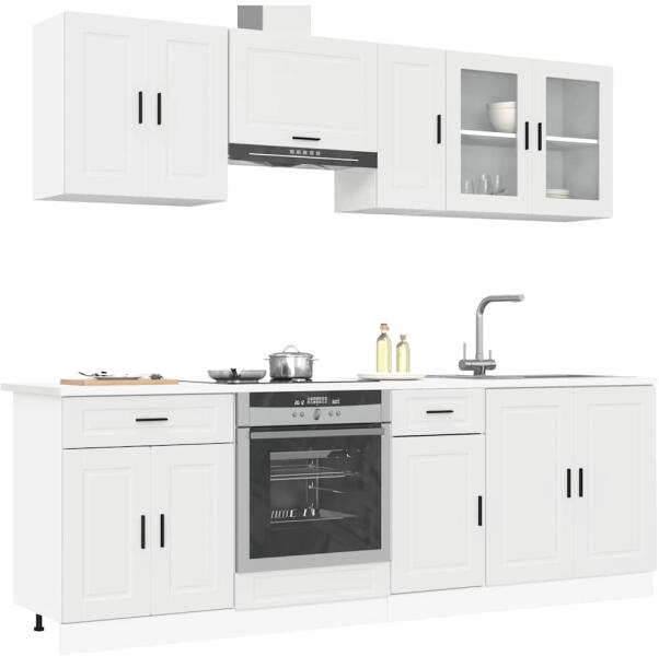 Ez az elegáns kialakítású, nyolcrészes konyhai szekrénygarnitúra optimalizálja konyhája terét, és bőséges tárolóhelyet biztosít személyes tárgyainak! Stabil és tartós anyag: A szerelt fa tartós és stabil anyag sima felülettel, amely ellenáll a nedvességnek, a vetemedésnek és a hasadásnak, így megbízható választás különféle célokhoz. Bőséges tárolóhely: A ko