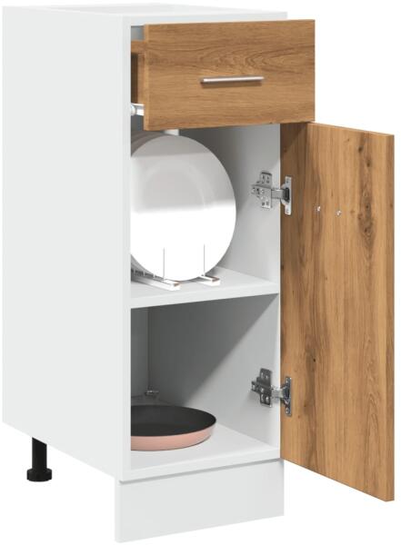 Ez a fiókos alsószekrény úgy optimalizálja konyhája terét, hogy bőséges tárolóhelyet biztosít személyes tárgyainak! Tartós anyag: A szerelt fa kivételes minőségű, sima felületű, szilárd, stabil, és ellenáll a nedvességnek. A szerelt fából készült konyhaszekrény könnyen tisztítható. Bőséges tárolóhely: A szekrény 1 fiókkal és 2 rekesszel rendelkezik, melyek e