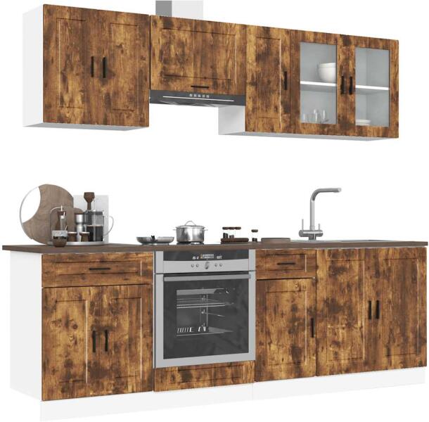 Ez az elegáns kialakítású, nyolcrészes konyhai szekrénygarnitúra optimalizálja konyhája terét, és bőséges tárolóhelyet biztosít személyes tárgyainak! Stabil és tartós anyag: A szerelt fa tartós és stabil anyag sima felülettel, amely ellenáll a nedvességnek, a vetemedésnek és a hasadásnak, így megbízható választás különféle célokhoz. Bőséges tárolóhely: A ko