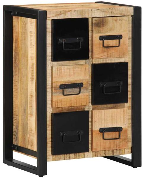 Ez a fából készült komód egyszerre nyújt dekoratív megjelenést és praktikus tárolási lehetőséget, így tökéletes kiegészítője otthonának. Robusztus és stabil: A tömör mangófa egy erős, trópusi keményfa, mely rendkívüli tartóssága és szilárdsága miatt különösen kedvelt a bútorgyártásban. A fa gyönyörű erezetének köszönhetően minden darab kissé különb
