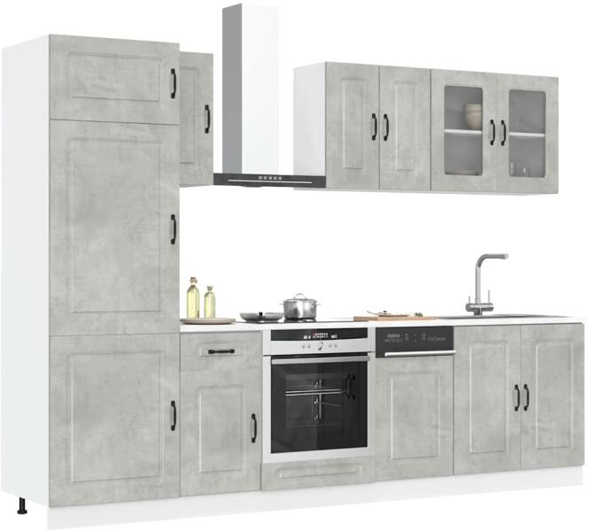 Ez az elegáns kialakítású, nyolcrészes konyhai szekrénygarnitúra optimalizálja konyhája terét, és bőséges tárolóhelyet biztosít személyes tárgyainak! Stabil és tartós anyag: A szerelt fa tartós és stabil anyag sima felülettel, amely ellenáll a nedvességnek, a vetemedésnek és a hasadásnak, így megbízható választás különféle célokhoz. Bőséges tárolóhely: A ko