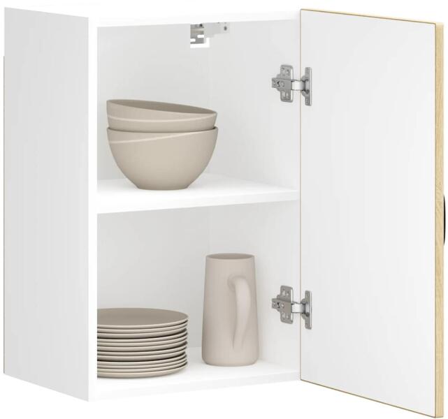 Ez a konyhai fali szekrény optimalizálja a konyhai teret, és bőséges tárolóhelyet biztosít személyes tárgyainak! Stabil és tartós anyag: A szerelt fa tartós és stabil anyag sima felülettel, amely ellenáll a nedvességnek, a vetemedésnek és a hasadásnak, így megbízható választás különféle célokhoz. Bőséges tárolóhely: A konyhai fali szekrény elegendő helyet kínál