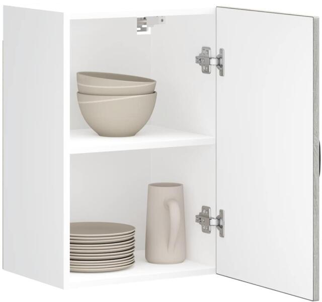 Ez a konyhai fali szekrény optimalizálja a konyhai teret, és bőséges tárolóhelyet biztosít személyes tárgyainak! Stabil és tartós anyag: A szerelt fa tartós és stabil anyag sima felülettel, amely ellenáll a nedvességnek, a vetemedésnek és a hasadásnak, így megbízható választás különféle célokhoz. Bőséges tárolóhely: A konyhai fali szekrény elegendő helyet kínál