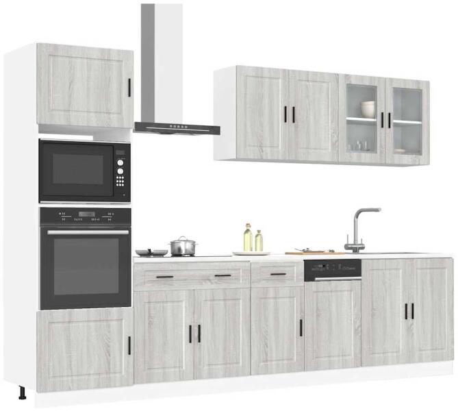 Ez az elegáns kialakítású, tizenegy részes konyhai szekrénygarnitúra optimalizálja konyhája terét, és bőséges tárolóhelyet biztosít személyes tárgyainak! Stabil és tartós anyag: A szerelt fa tartós és stabil anyag sima felülettel, amely ellenáll a nedvességnek, a vetemedésnek és a hasadásnak, így megbízható választás különféle célokhoz. Bőséges tárolóhely: