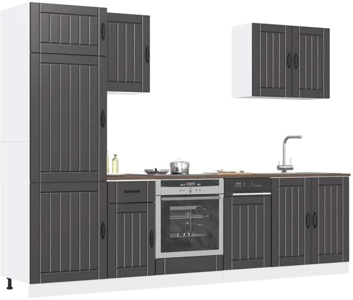 Ez az elegáns kialakítású, hétrészes konyhai szekrénygarnitúra optimalizálja konyhája terét, és bőséges tárolóhelyet biztosít személyes tárgyainak! Stabil és tartós anyag: A szerelt fa tartós és stabil anyag sima felülettel, amely ellenáll a nedvességnek, a vetemedésnek és a hasadásnak, így megbízható választás különféle célokhoz. Bőséges tárolóhely: A kon