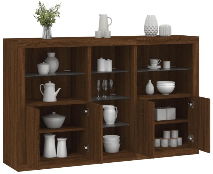 Díszítse fel szobáját ezzel a modern, LED-es lámpákkal felszerelt tálalószekrénnyel, mely könnyedén beleolvad otthona bármely stílusához. Tartós anyag: A szerelt fa kivételes minőségű, sima felületű, szilárd, stabil, és ellenáll a nedvességnek. RGB LED-világítás: A tálalószekrény élénk RGB LED-világítással lett felszerelve. A sokféle testre szabható menü seg
