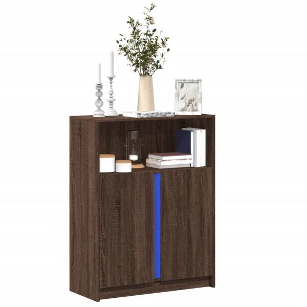 Díszítse fel szobáját ezzel a modern, LED-es lámpákkal felszerelt tálalószekrénnyel, mely könnyedén beleolvad otthona bármely stílusához. Tartós anyag: A szerelt fa kivételes minőségű, sima felületű, szilárd, stabil, és ellenáll a nedvességnek. Bőséges tárolóhely: A tálalószekrény rengeteg tárolóhelyet biztosít folyóiratai, könyvei, távirányítói és egyéb