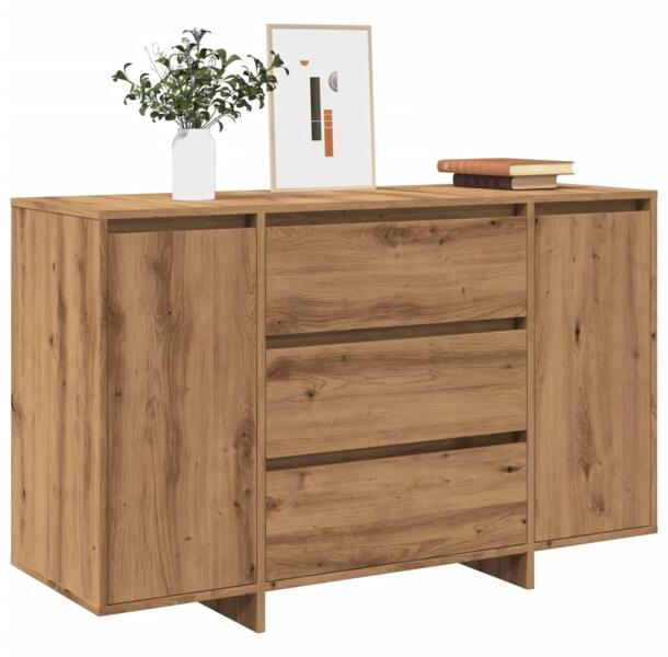Ez a klasszikus, időtlen megjelenésű tálalószekrény nappalija, étkezője, folyosója, stb. nagyszerű kiegészítője lesz. Stabil és tartós anyag: A szerelt fa tartós és stabil anyag sima felülettel, amely ellenáll a nedvességnek, a vetemedésnek és a hasadásnak, így megbízható választás különféle célokhoz. Bőséges tárolóhely: Ez a szekrény bőséges tárolóhelyet b