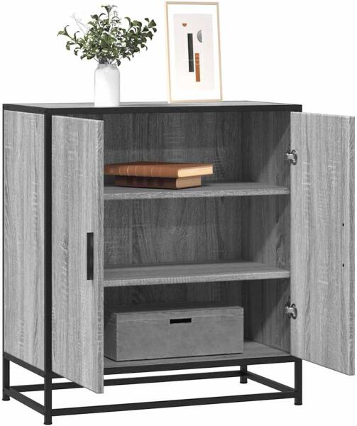 Ez a klasszikus, ipari stílusú tálalószekrény kielégíti igényeit, és a helyiség nagyszerű kiegészítője lesz. Tartós anyag: A szerelt fa kivételes minőségű, sima felületű, szilárd, stabil, és ellenáll a nedvességnek. Bőséges tárolóhely: A büfészekrény elegendő helyet biztosít alapvető holmijai kézközelben történő rendezett tárolásához. Bemutatófunkció: A