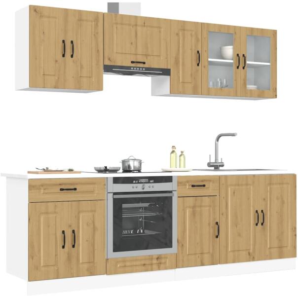 Ez az elegáns kialakítású, nyolcrészes konyhai szekrénygarnitúra optimalizálja konyhája terét, és bőséges tárolóhelyet biztosít személyes tárgyainak! Stabil és tartós anyag: A szerelt fa tartós és stabil anyag sima felülettel, amely ellenáll a nedvességnek, a vetemedésnek és a hasadásnak, így megbízható választás különféle célokhoz. Bőséges tárolóhely: A ko