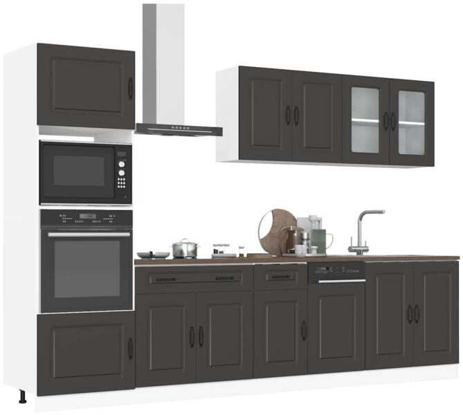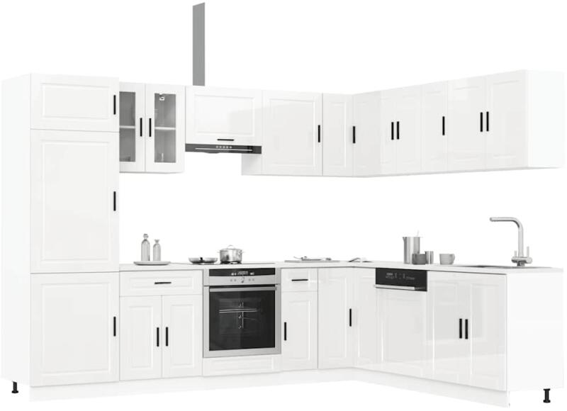 Ez az elegáns kialakítású, tizennégy részes konyhai szekrénygarnitúra optimalizálja konyhája terét, és bőséges tárolóhelyet biztosít személyes tárgyainak! Stabil és tartós anyag: A szerelt fa tartós és stabil anyag sima felülettel, amely ellenáll a nedvességnek, a vetemedésnek és a hasadásnak, így megbízható választás különféle célokhoz. Bőséges tárolóhely