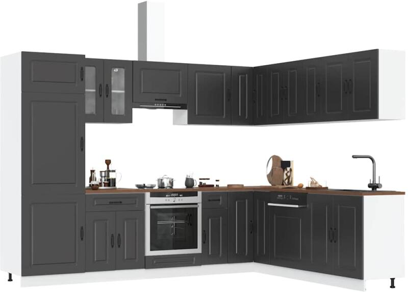 Ez az elegáns kialakítású, tizennégy részes konyhai szekrénygarnitúra optimalizálja konyhája terét, és bőséges tárolóhelyet biztosít személyes tárgyainak! Stabil és tartós anyag: A szerelt fa tartós és stabil anyag sima felülettel, amely ellenáll a nedvességnek, a vetemedésnek és a hasadásnak, így megbízható választás különféle célokhoz. Bőséges tárolóhely