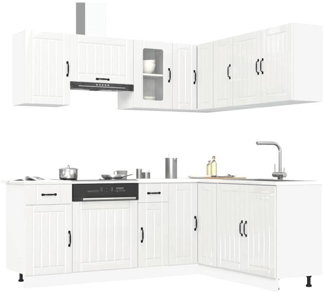 Ez az elegáns kialakítású, tizenegy részes konyhai szekrénygarnitúra optimalizálja konyhája terét, és bőséges tárolóhelyet biztosít személyes tárgyainak! Stabil és tartós anyag: A szerelt fa tartós és stabil anyag sima felülettel, amely ellenáll a nedvességnek, a vetemedésnek és a hasadásnak, így megbízható választás különféle célokhoz. Bőséges tárolóhely: