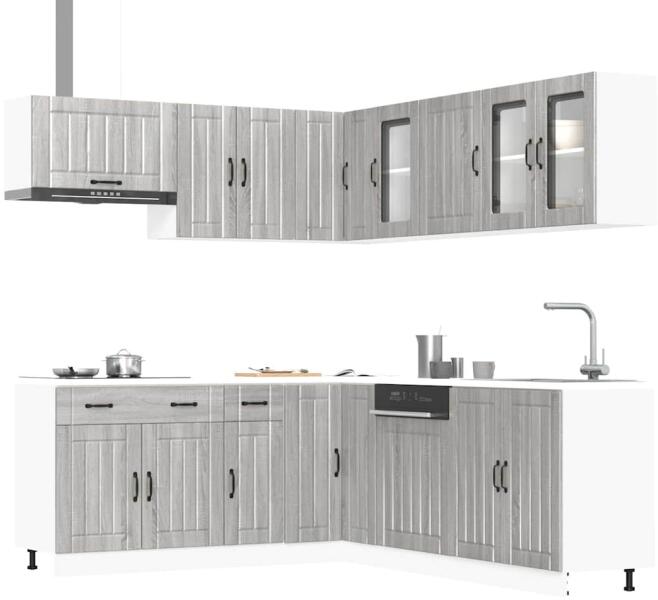Ez az elegáns kialakítású, tizenegy részes konyhai szekrénygarnitúra optimalizálja konyhája terét, és bőséges tárolóhelyet biztosít személyes tárgyainak! Stabil és tartós anyag: A szerelt fa tartós és stabil anyag sima felülettel, amely ellenáll a nedvességnek, a vetemedésnek és a hasadásnak, így megbízható választás különféle célokhoz. Bőséges tárolóhely: