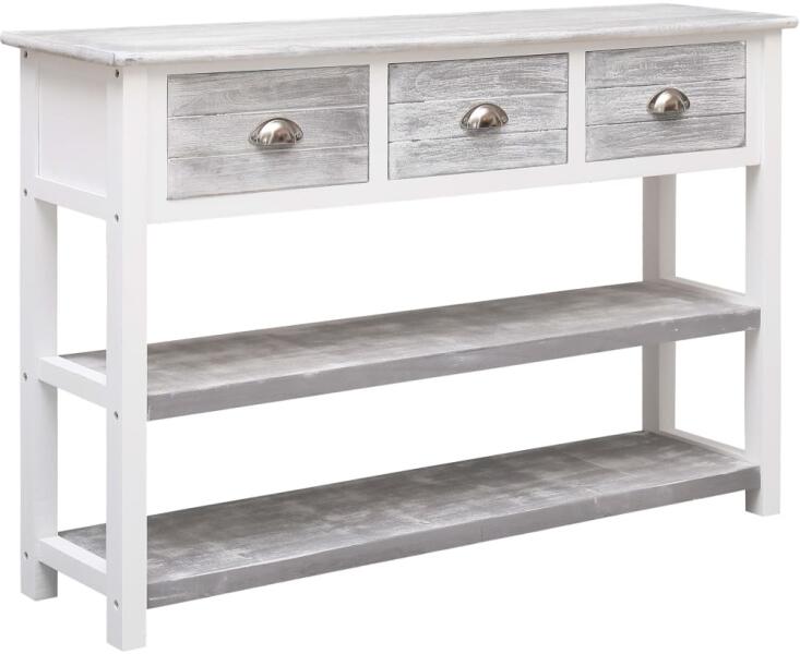 Ez a fából készült tálalószekrény időtlen stílusával pompás darabja lesz otthonának. A tálalószekrény prémium minőségű nyárfából és császárfából készült, és rendkívül stabil és tartós. Masszív teteje ideális dísztárgyak, például vázák vagy cserepes növények elhelyezésére. A 3 fiók és 2 polc bőséges tárolóhelyet biztosít a különféle tárgyak r