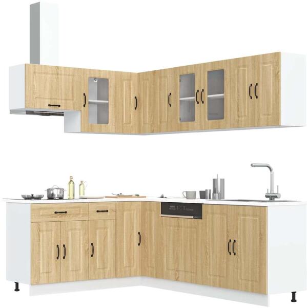 Ez az elegáns kialakítású, tizenegy részes konyhai szekrénygarnitúra optimalizálja konyhája terét, és bőséges tárolóhelyet biztosít személyes tárgyainak! Stabil és tartós anyag: A szerelt fa tartós és stabil anyag sima felülettel, amely ellenáll a nedvességnek, a vetemedésnek és a hasadásnak, így megbízható választás különféle célokhoz. Bőséges tárolóhely: