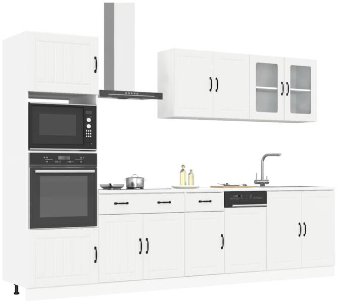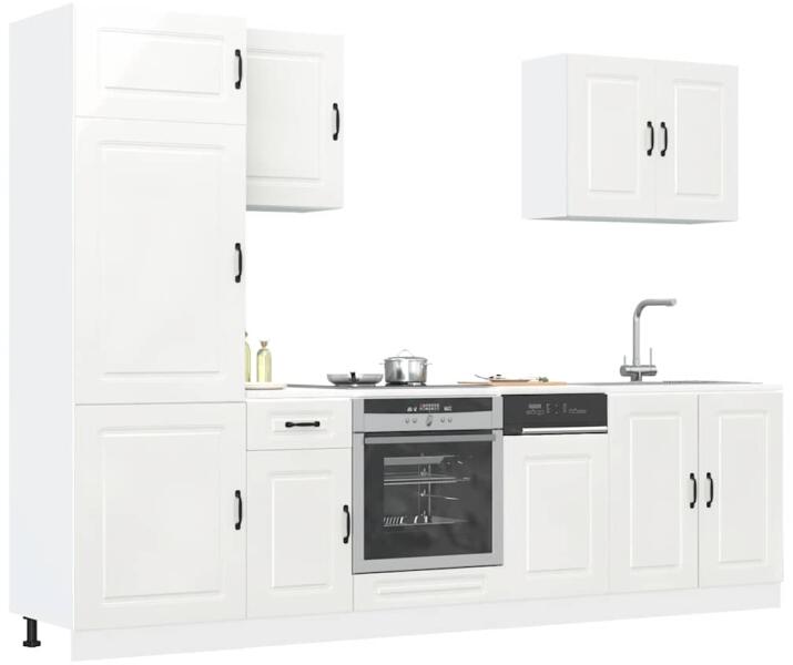 Ez az elegáns kialakítású, hétrészes konyhai szekrénygarnitúra optimalizálja konyhája terét, és bőséges tárolóhelyet biztosít személyes tárgyainak! Stabil és tartós anyag: A szerelt fa tartós és stabil anyag sima felülettel, amely ellenáll a nedvességnek, a vetemedésnek és a hasadásnak, így megbízható választás különféle célokhoz. Bőséges tárolóhely: A kon