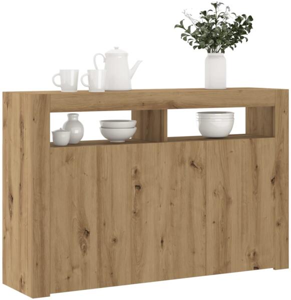 Díszítse fel szobáját ezzel a modern, LED-es lámpákkal felszerelt tálalószekrénnyel, mely könnyedén beleolvad otthona bármely stílusához. Tartós anyag: A szerelt fa kivételes minőségű, sima felületű, szilárd, stabil, és ellenáll a nedvességnek. Bőséges tárolóhely: A tálalószekrény rengeteg tárolóhelyet biztosít folyóiratai, könyvei, távirányítói és egyéb