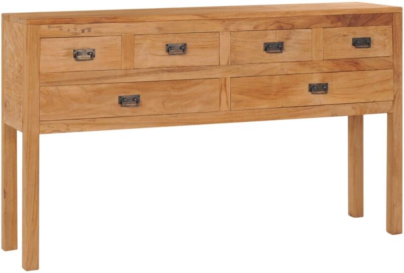 Alakítsa át otthonát retró stílusúvá tálalószekrényünkkel! Ez a kisszekrény tömör tíkfából készült, így erős és tartós alapot biztosít. A természetes olajos bevonat sima felületet biztosít, így a tisztítása és rendszeresen ápolása is egyszerű. A hat különböző méretű fiók bőséges helyet kínál a tárgyak tárolására, valamint tisztán és rendezetten ta